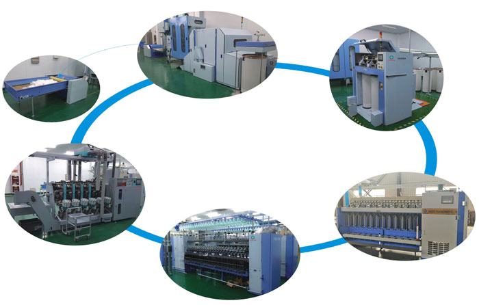 The full-servo computer roving frame adopts advanced computer control technology. Four servo motors drive the spindle wing, roller, winding and lifting systems respectively, realizing the synchronous matching of the four motion systems. It is easy to operate, highly automated, and has good yarn quality. It is the choice for spinning high-quality coarse sand.