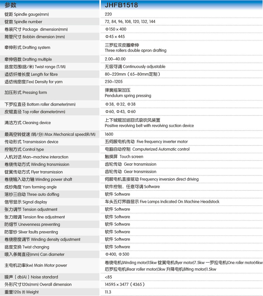 JHFB1518五軸聯(lián)動(dòng)全伺服毛紡電腦粗紗機(jī),采用五伺服電機(jī)驅(qū)動(dòng),結(jié)構(gòu)簡(jiǎn)單,自動(dòng)化程度高,設(shè)有斷電保護(hù)裝置,換向迅速靈敏,克服7常用結(jié)構(gòu)換向時(shí)窘紗等弊病及實(shí)現(xiàn)主牽伸羅拉單獨(dú)控制功能,是國(guó)內(nèi)先進(jìn)的實(shí)用新型毛紡粗紗機(jī)。